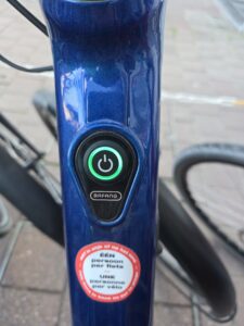 Men zet de fiets aan door de aan/uit knop enkele seconden in te drukken totdat er rondom de knop een lichtje gaat branden. De fiets is klaar om te rijden!